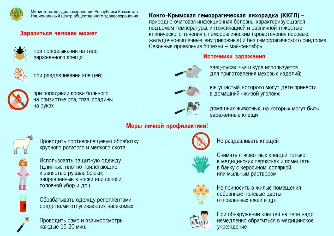 Специалисты НЦОЗ о профилактике Конго-Крымской геморрагической лихорадки Дата Авг 6, 2018 Поделиться Поделиться FacebookTwitterWhatsAppЭл. адрес