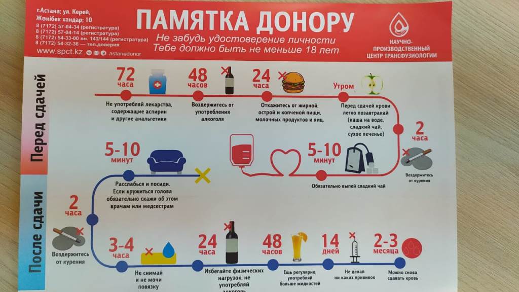 «В целом у нас по стране работает 18 центров крови. Ведущий находится в столице.За прошлый год к нам обратилось свыше 270 тыс человек. Кровь и препараты крови были перелиты более 81 тысячи пациентов. Более 1/3 хирургические взрослые пациенты, более 1/3 терапевтические взрослые пациенты, 14% — детям, 13% — беременные роженицы, родильницыю Очень важно пропогандировать безвозмездное донорство крови. В целом переливание крови остро необходимо пациентам гематологических отделений, онкологии, реанимации, хирургии, отделений трансплантации, ожогового, родильного отделений и др», — отметила после пресс-конференции Вице-министр здравоохранения Лязат Актаева.