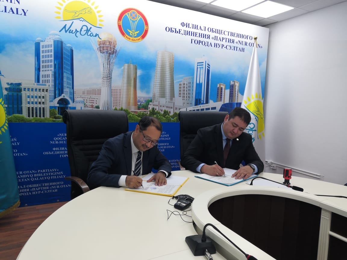 Сегодня подписан Меморандум о взаимном сотрудничестве и стратегическом партнерстве между Общественным объединением «Партия «Nur Otan» города Нур-Султан и Национальным центром общественного здравоохранения.