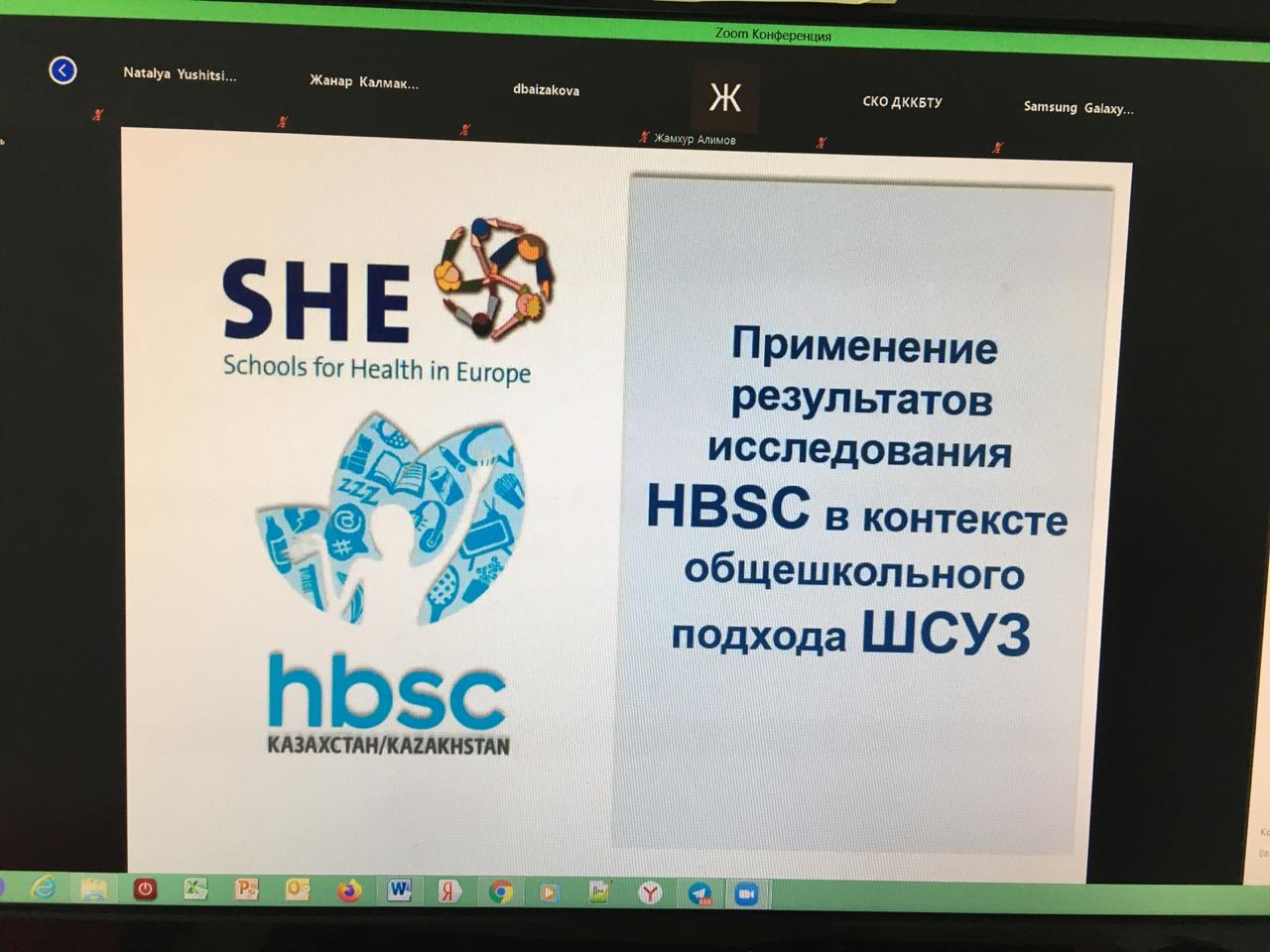 29 мая 2020 года в Национальном центре общественного здравоохранения МЗ РК состоялся круглый стол в режиме online на тему «Презентация глобальных и национальных результатов исследования HBSC». Исследование HBSC (Health Behaviour in School-aged Children) были проведены в рамках внедрения в организациях образования проектов Всемирной организации здравоохранения «Школы, способствующие укреплению здоровья», а его результаты позволили выявить проблемные области, которые требуют согласованных политических решений и практических мер для улучшения здоровья детей и подростков