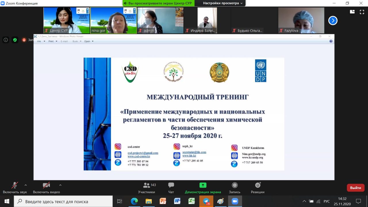 25-27 ноября 2020 года в онлайн режиме состоялся международный тренинг на тему: «Применение международных и национальных регламентов в части обеспечения химической безопасности», участие в котором приняли 173 экспертов из России, Белорусии и Казахстан.