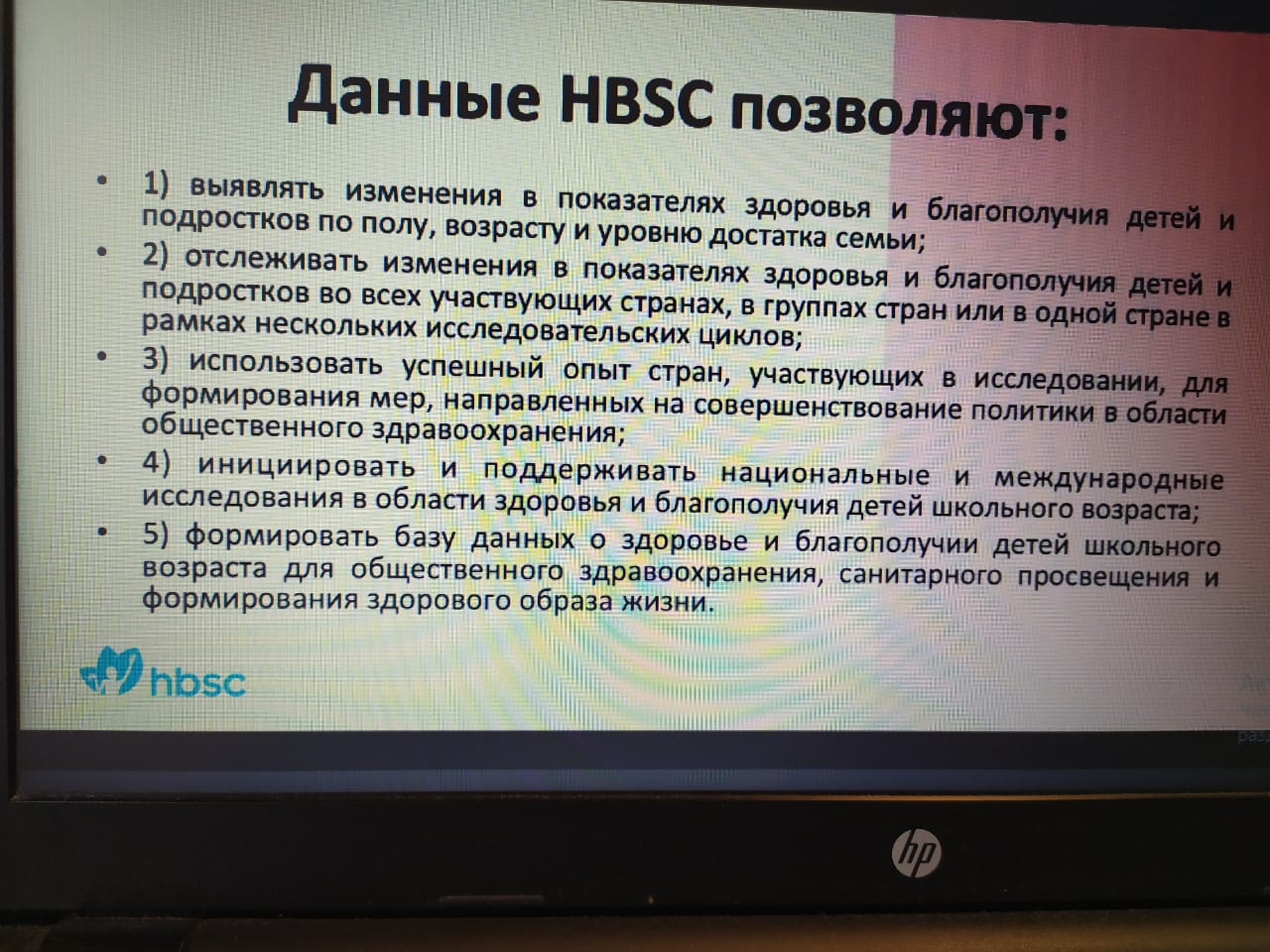 Были представлены краткие результаты опроса школьников в странах и роль данных HBSC в политике и практике общественного здравоохранения.