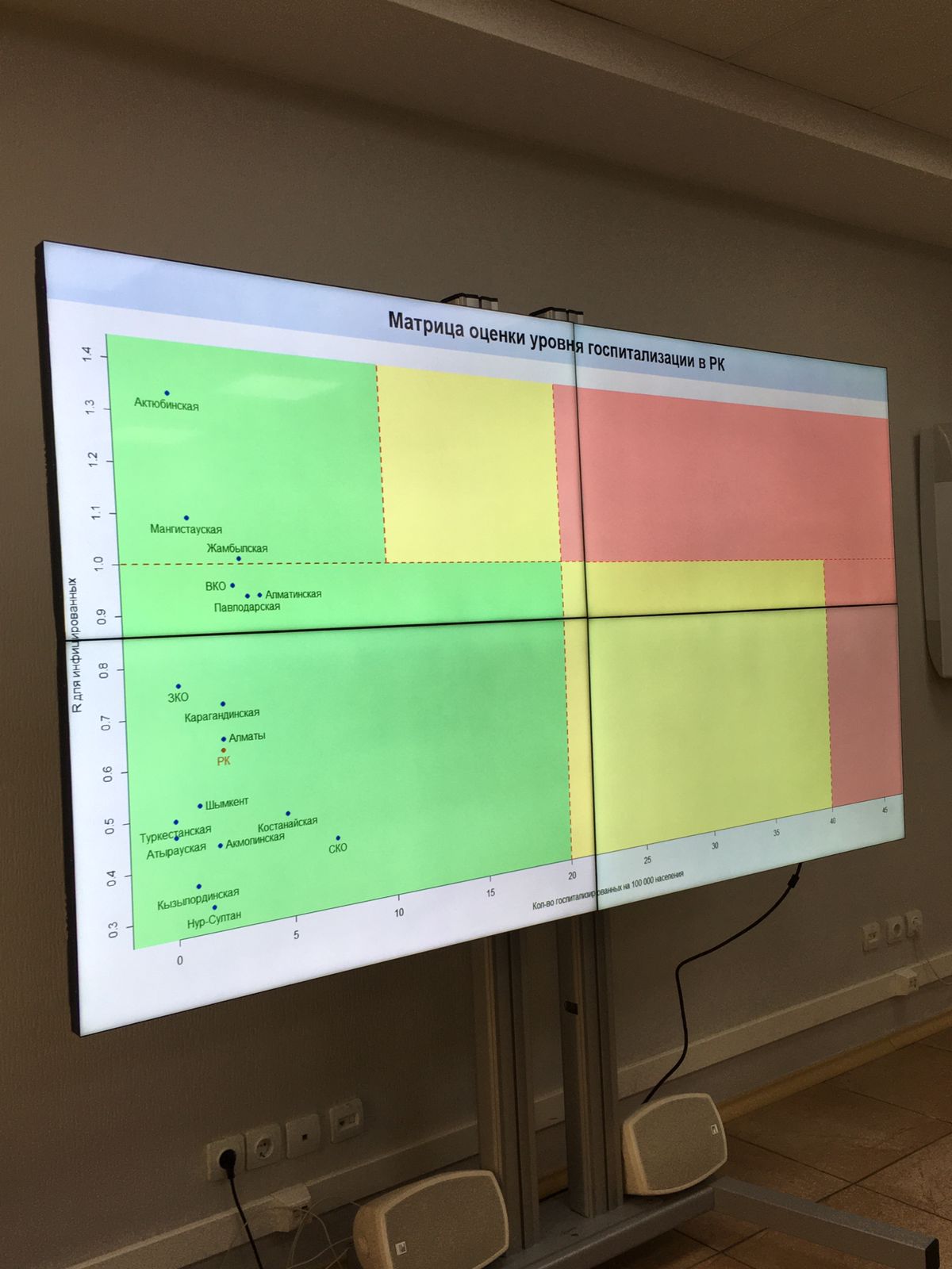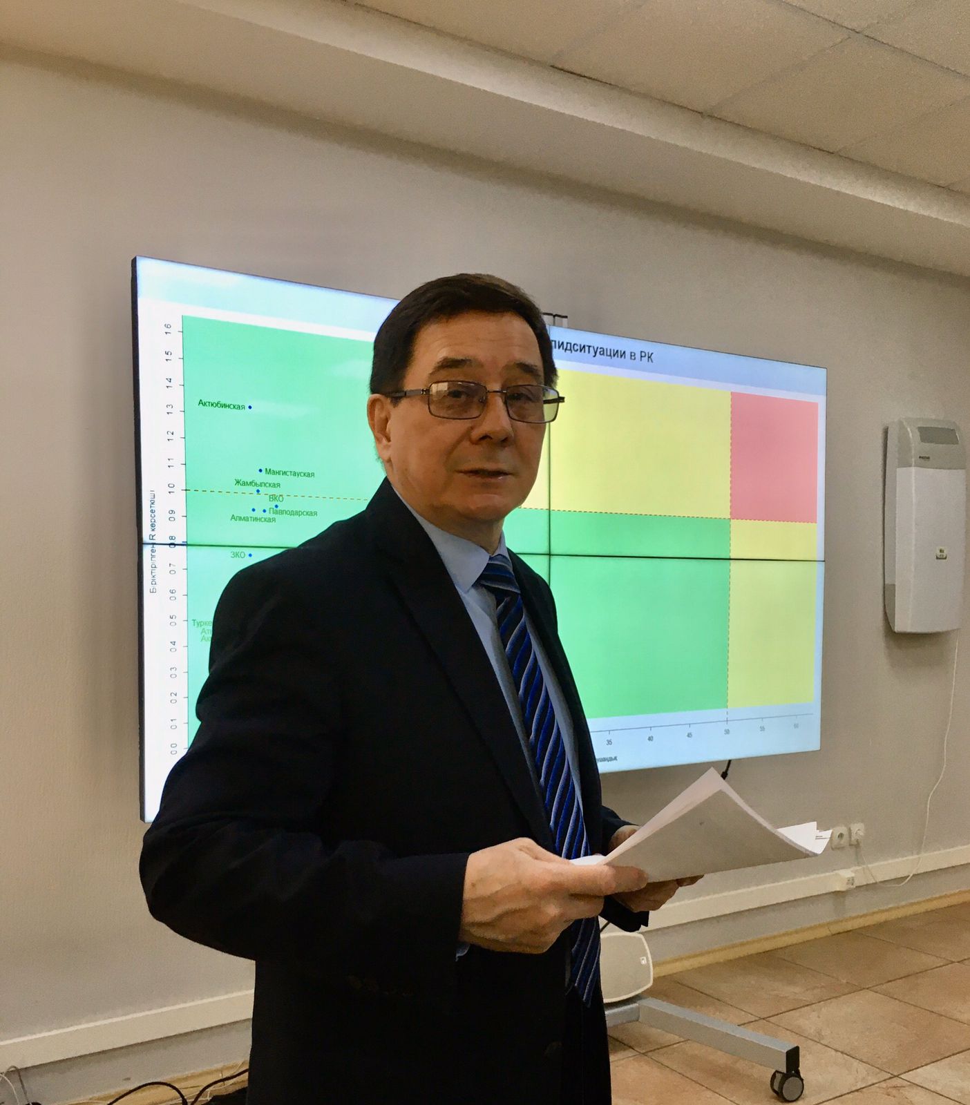 Он подробно рассказал как создается матрица оценки уровни госпитализации в РК, матрица оценки эпидемиологической ситуации в регионах Казахстана, репродуктивное число rt на основе регистрации подтвержденных и вероятных случаев КВИ по регионам и т.д. В завершении встречи специалисты Минздрава Таджикистана задали интересующие их вопросы и получили на них ответы.