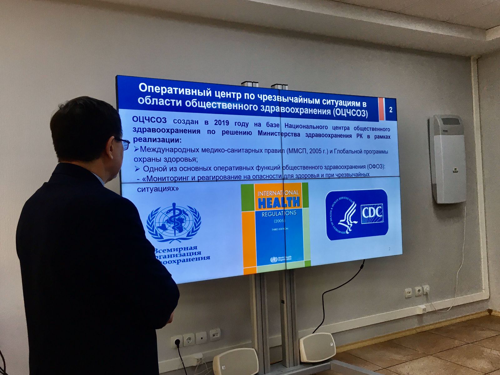 В ходе встречи Директор оперативного центра по чрезвычайным ситуациям в области общественного здравоохранения НЦОЗ Альберт Аскаров представил презентацию о деятельности оперативного центра и поделился опытом работы в период пандемии коронавирусной инфекции.