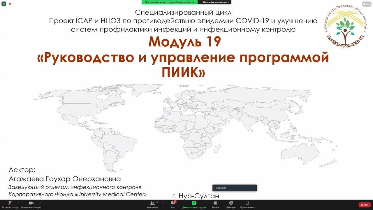 НЦОЗ проводит II этап специализированного цикла для врачей – эпидемиологов на тему: «Профилактика инфекции и инфекционный контроль». Занятия проходят в комбинированном формате онлайн — офлайн с 31 октября и продолжится до 9 декабря текущего года, в объеме — 210 часов/ 7 кредитов в рамках проекта ICAP по противодействию эпидемии COVID-19 и улучшению систем профилактики инфекций и инфекционному контролю в Казахстане, при финансовой поддержке компании «Шеврон».