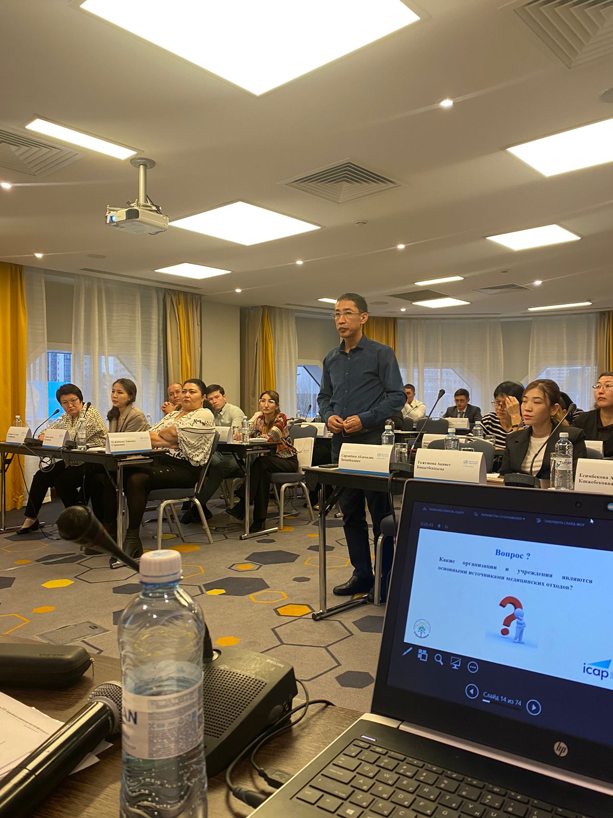Спикерами выступили: директор департамента профилактики инфекционных заболеваний НЦОЗ — К.О. Текебаев, к.м.н., врач-бактериолог, консультант по программе ПИИК — Зейнегуль Шакенова, врач эпидемиолог высшей категории, магистр общественного здравоохранения КФ «UMC» — Гаухар Агажаева, Магистр медицины, врач-эпидемиолог, внешний консультант, к.м.н. — Анна Сергеевна Гончарова.