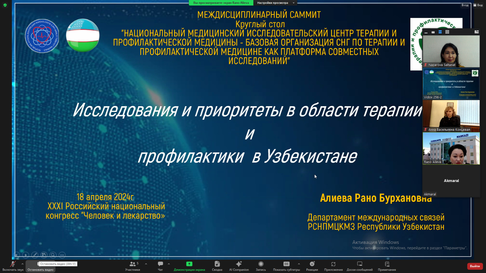 18 апреля заместитель председателя Правления НЦОЗ Салтанат Назарова приняла участие в работе Международного конгресса «Человек и Лекарство», который проходил в гибридном формате.