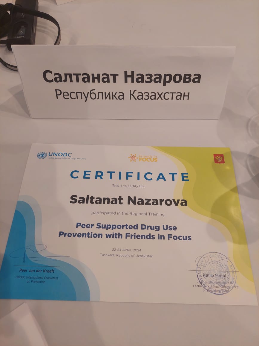 С 22 по 24 апреля 2024 года в Ташкенте (Республика Узбекистан), прошел международный тренинг для молодежных лидеров и представителей государственных органов по Центральной Азии на тему «Профилактика употребления наркотиков «вместе с друзьями в центре внимания» по принципу «равный-равному»». Целью тренинга является обмен опытом по профилактике употребления наркотиков среди молодежи и разработка проекта Дорожной карты по внедрению проекта «Друзья в центре внимания» по принципу «равный равному».