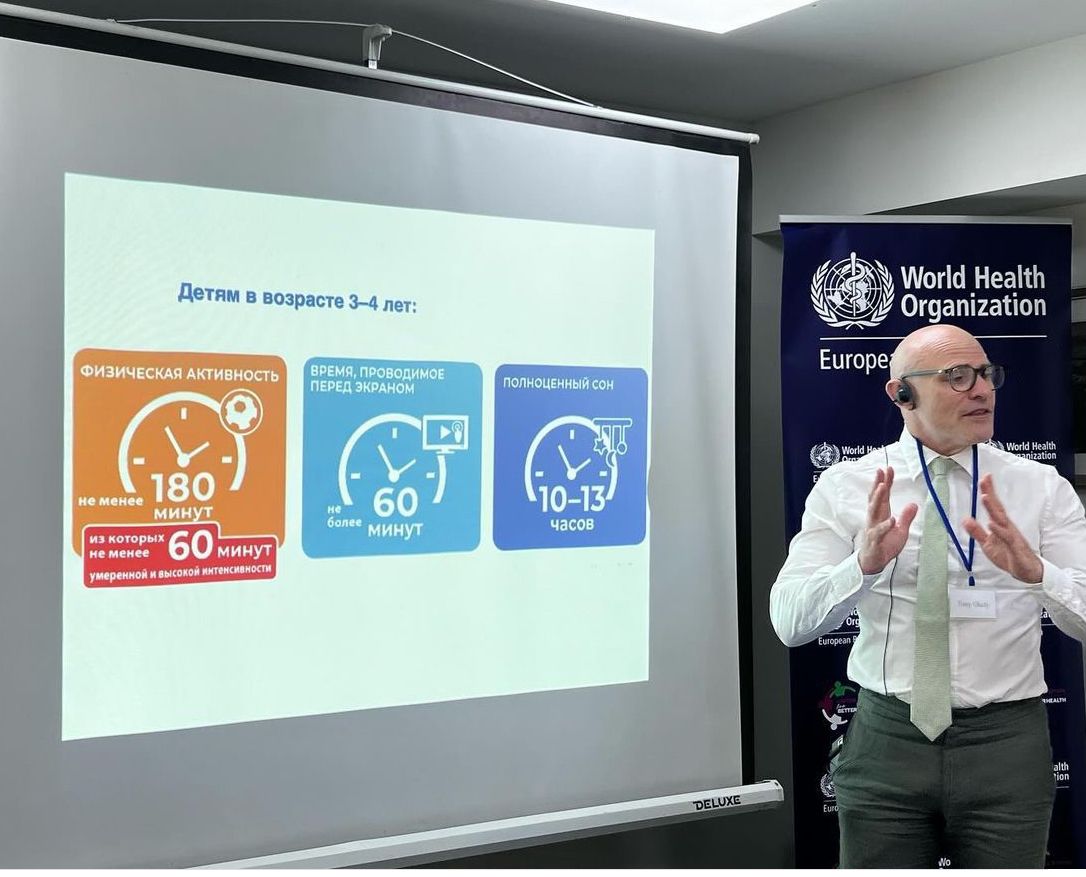13-14 мая в г. Астане состоялся двухдневный семинар, организованный в целях обучения исследователей по проведению исследования и сбору данных суточной двигательной активности детей дошкольного возраста и определения доли детей 3-5 лет, соответствующей Глобальным рекомендациям Всемирной организации здравоохранения (ВОЗ) по физической активности, малоподвижному образу жизни и сну, а также оценке распространенности избыточной массы тела и ожирения среде детей данной возрастной группы.