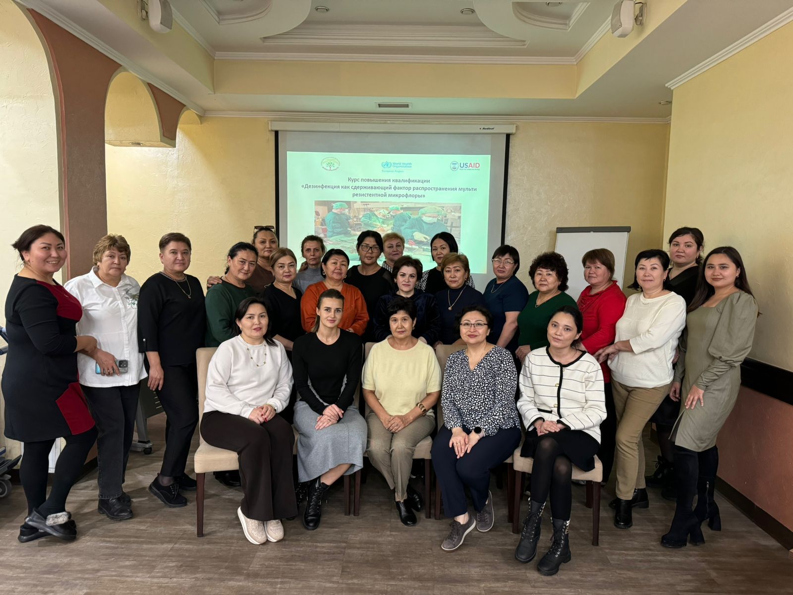 С 4 по 8 ноября 2024 года в г. Алматы проведен курс повышения квалификации для старших медицинских сестёр центральных стерилизационных отделений клиник, претендующих на статус региональных школ передового опыта в области профилактики инфекций и инфекционного контроля (ПИИК). Обучение проходило по образовательной программе «Дезинфекция как сдерживающий фактор распространения мультирезистентной микрофлоры».