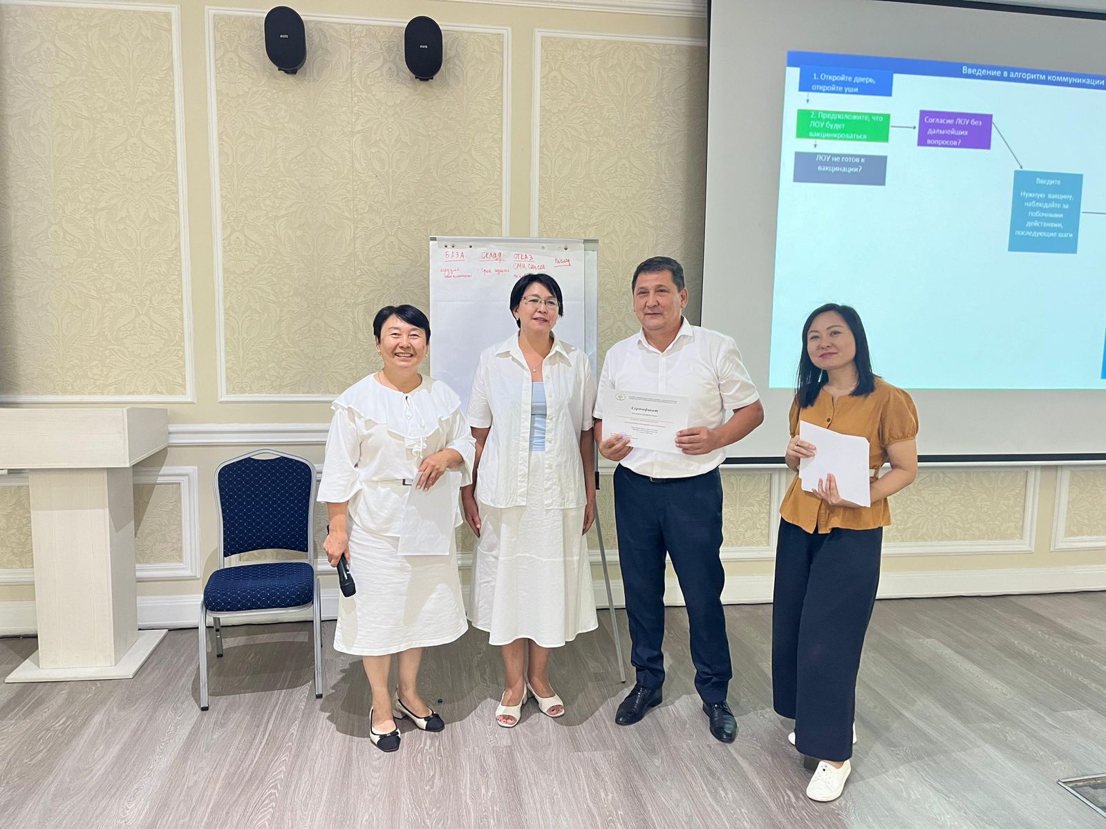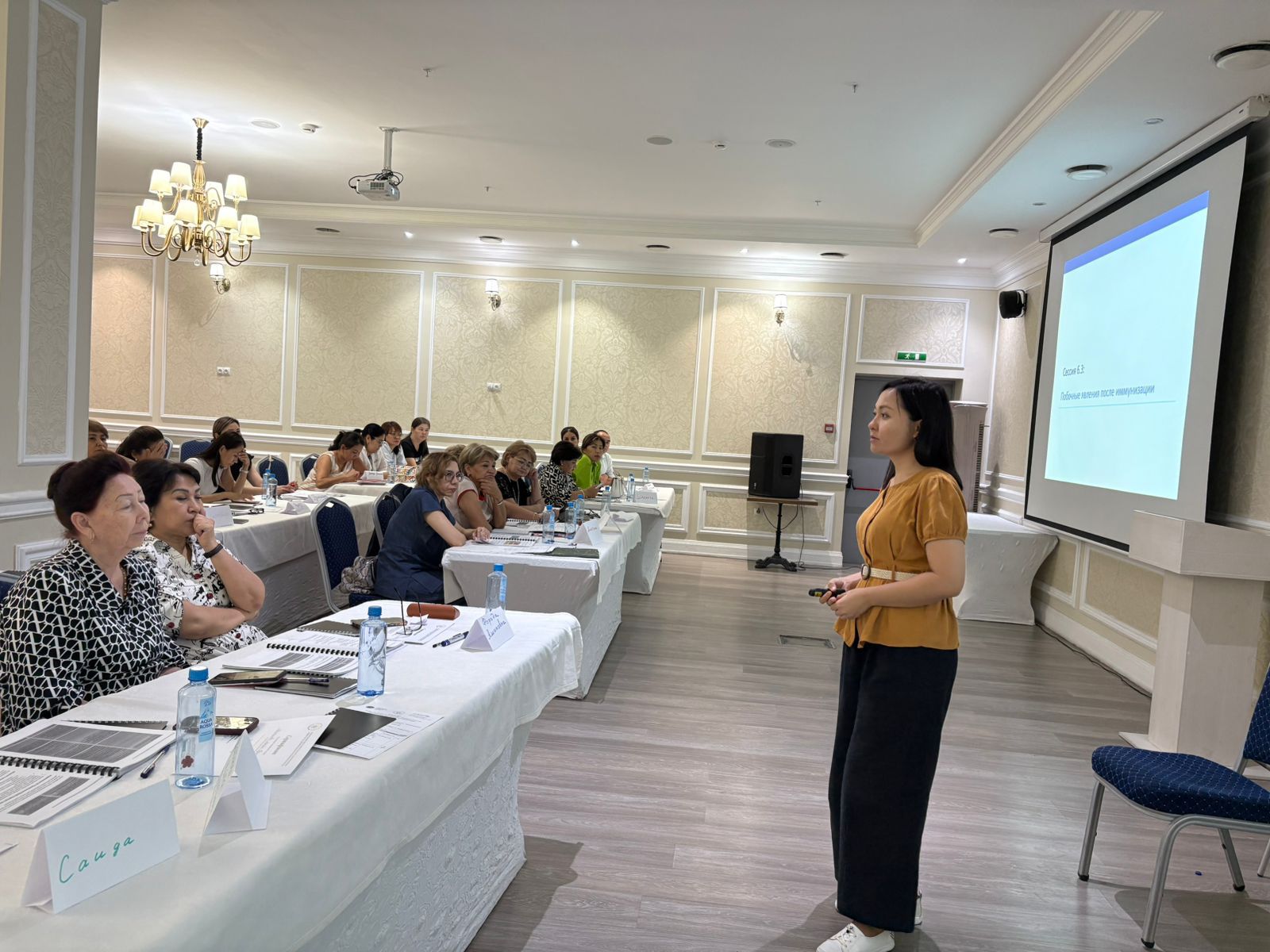 В ходе тренинга представлена информация о текущей ситуации и проблемах по иммунопрофилактике Казахстане, продемонстрированы коммуникативные навыки медицинских работников направленные на развитие навыков конструктивной и этичной коммуникации, преодоление личных предубеждений, противодействие дезинформации в сфере иммунизации, использование современных инструментов общения с родителями и опекунами.